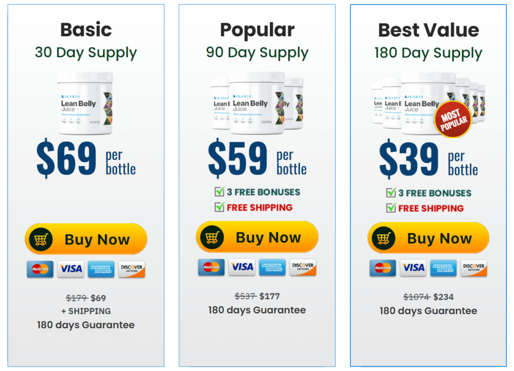 Ikaria Lean Belly Juice is available in various packages to accommodate different needs and budgets: